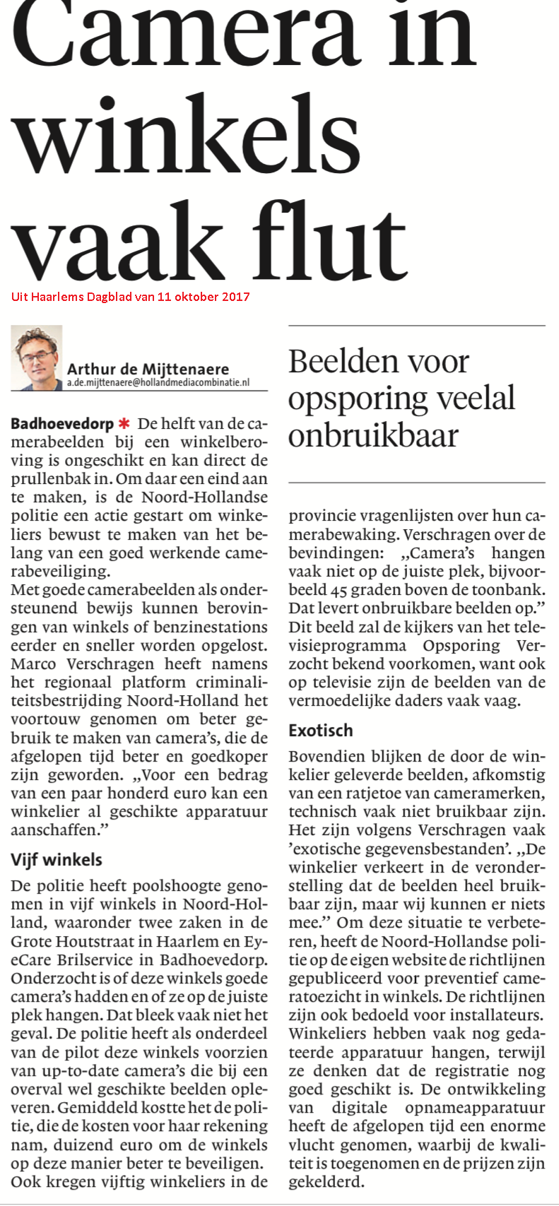 Link naar artikel Excellent Cameratoezicht